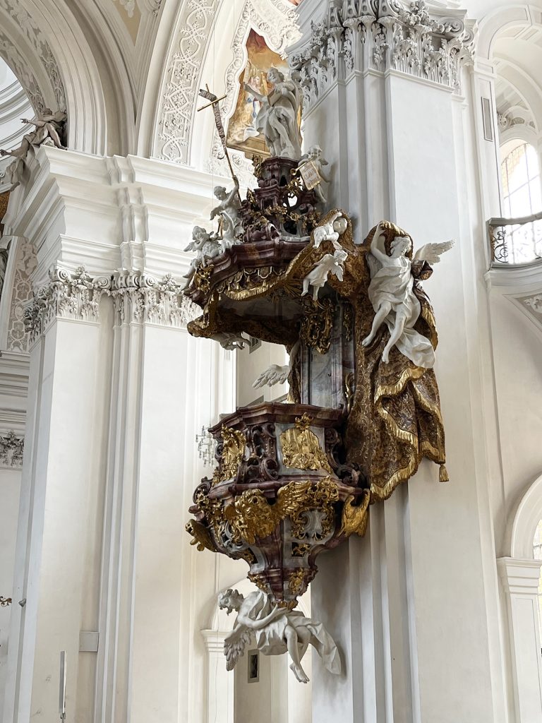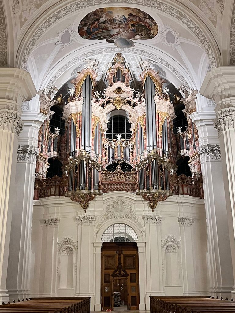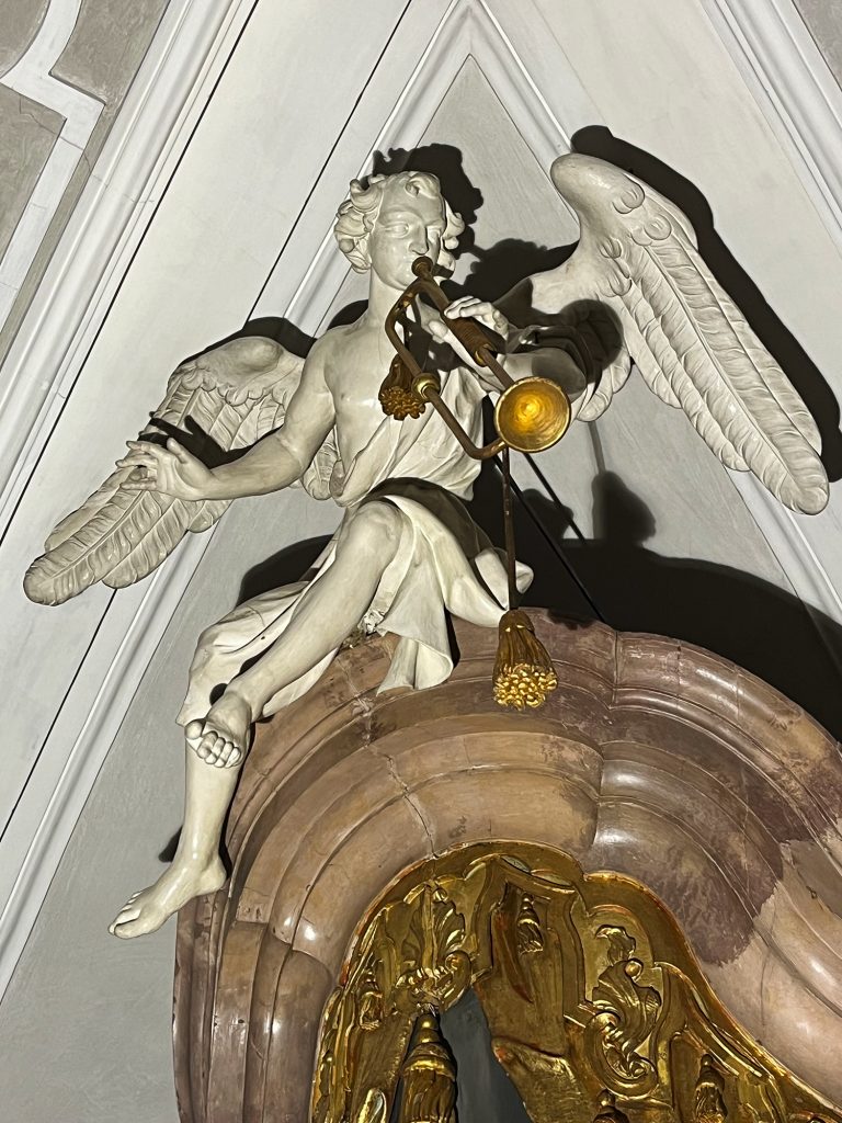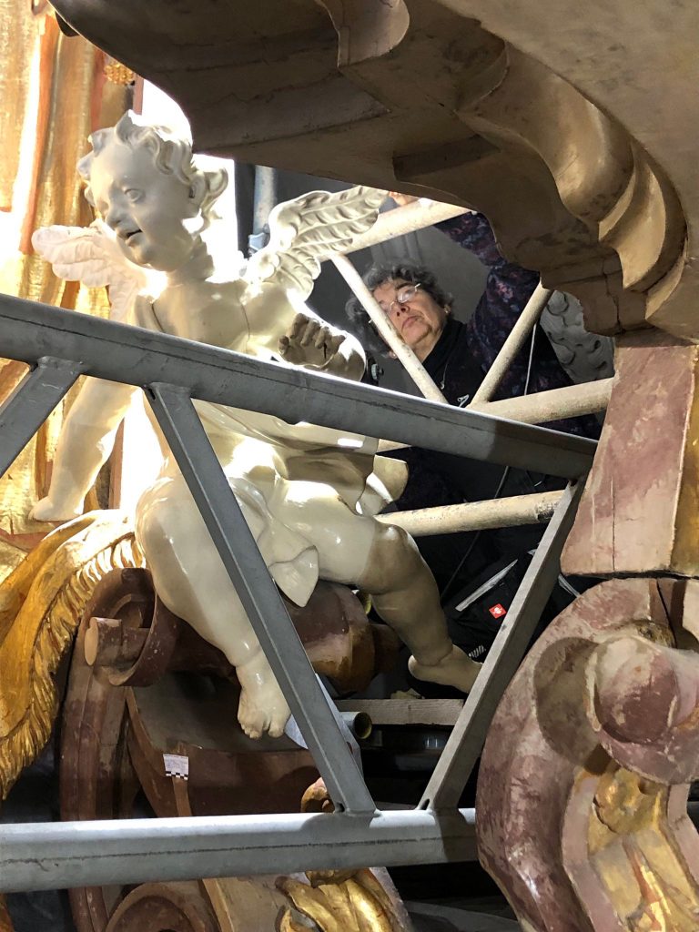 Teamleitung bei der Bearbeitung des Orgelprospekts durch insgesamt sechs Restaurator:innen.